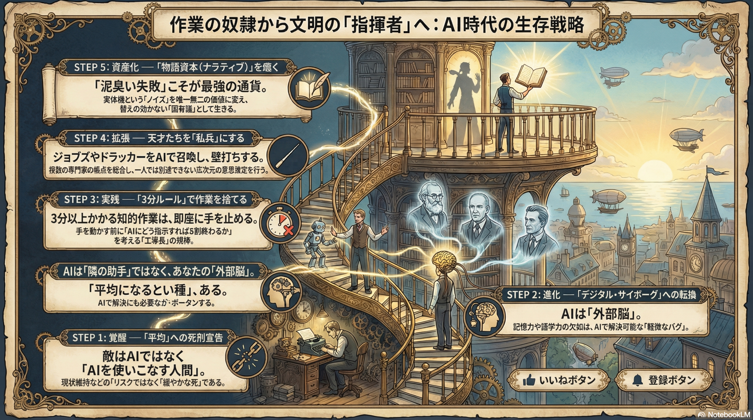 それは、AIに対抗するのではなく、AIを参謀(CSO)として指揮し、独自の「意味」を創り出す「ディープジェネラリスト」へと進化することです。